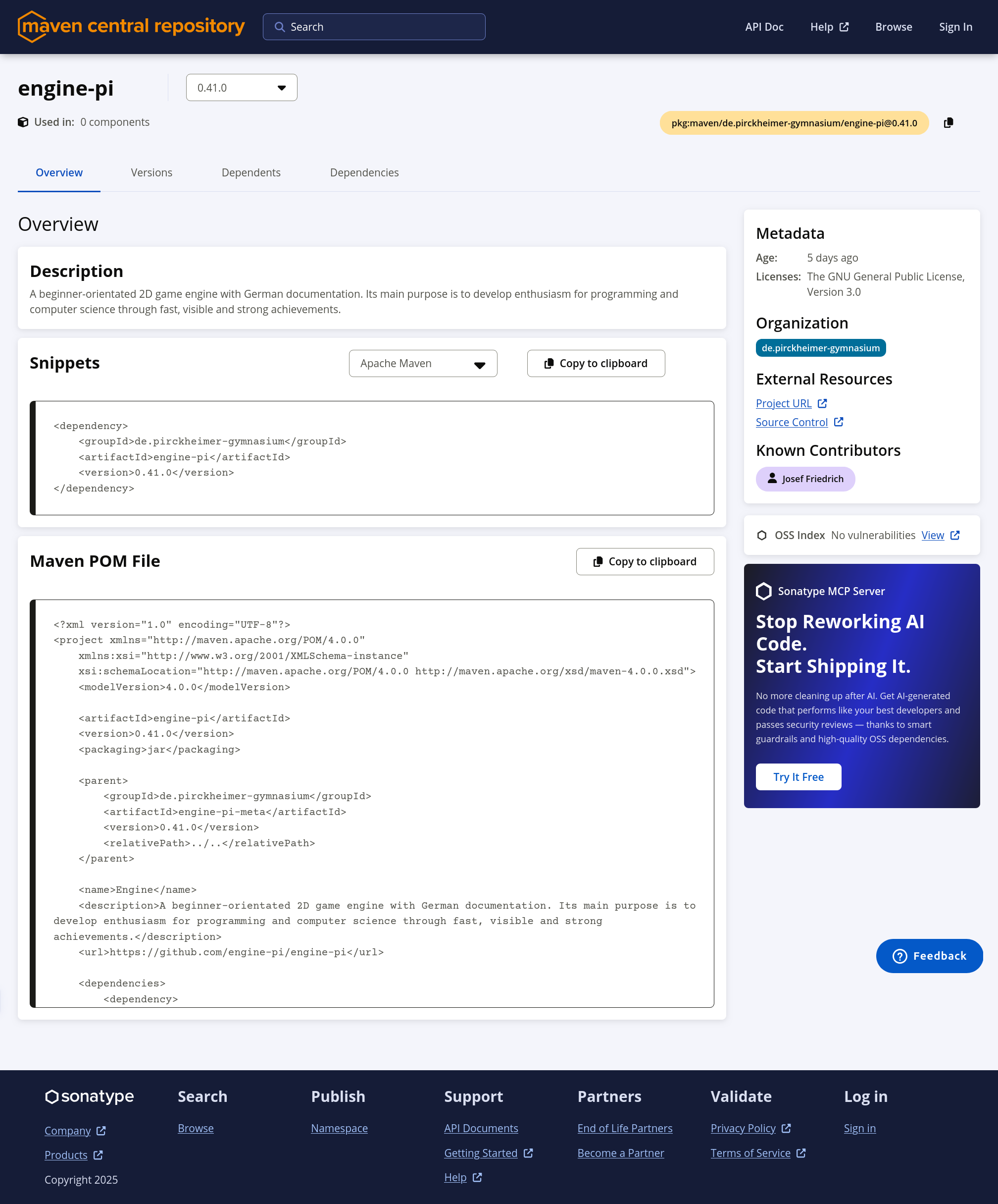 Im Gegensatz zur Engine Alpha ist die Engine Pi über das wichtigste Repository für Java-Projekte das sogenannte Maven Central Repository abrufbar.
