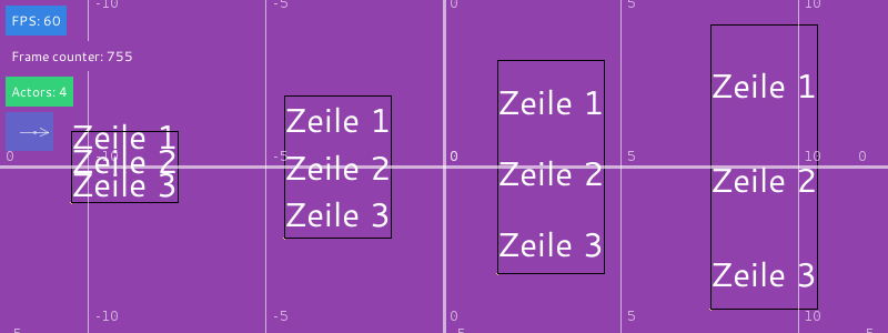 Beispieltext auf einer Ebene abprallen. Damit der Text aus dem Spielfenster
